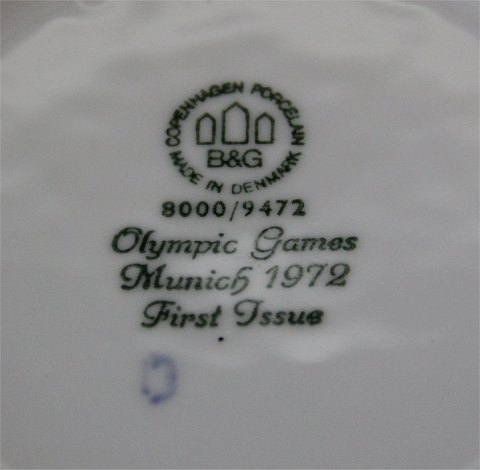 Beskrivelse: Bing & Grøndahl B&G 1972 Olympic Game Munich / Olympiade 1972 B&G Münich Olympiade 18 cm á kr. 100