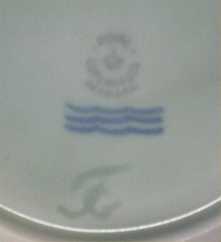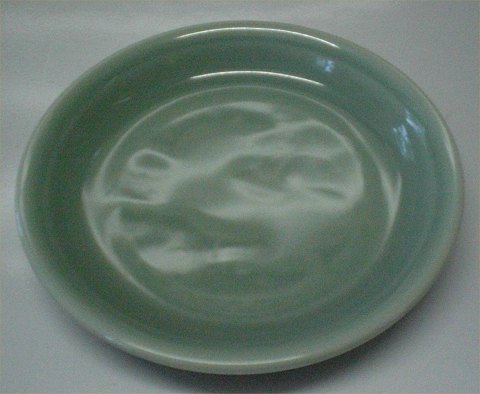 Beskrivelse: Royal Copenhagen stentøj 1979-1 Kgl. Celadon glaseret skål 18 cm med fabelløve i relief- Signeret FG or TG I fin og hel stand