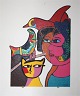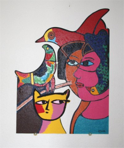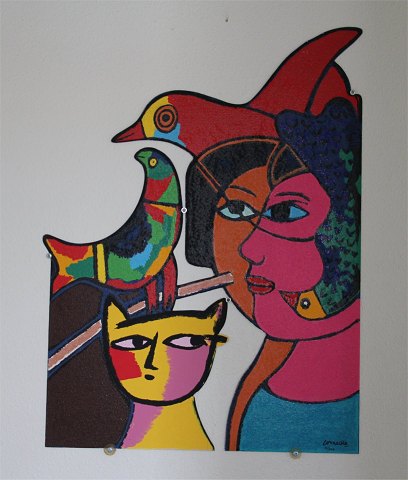 Corneille. Kvinder med fugl og kat. Skulptur. Terragrafi på jernplade, 32/149. Sign. Corneille. . . 72 cm, 54 cm.