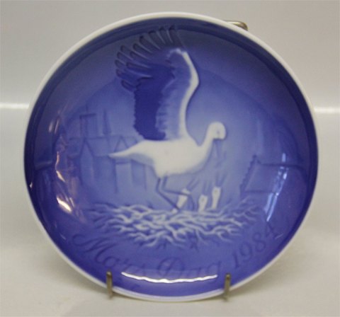 : Bing & Grøndahl B&G Morsdagsplatte 1984 motiv: STork med storkeunger i reden. I fin og hel stand.