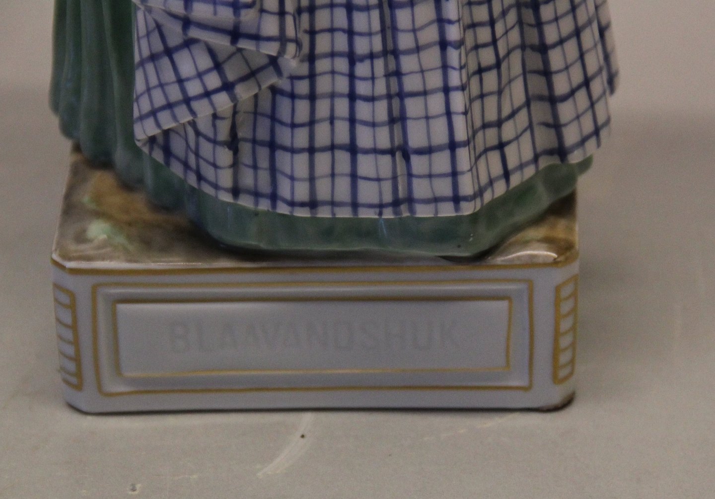 Beskrivelse: Kgl. figur fra Royal Copenhagen af Carl Martin-Hansen 12138 Kgl. Nationaldragt: Blåvandshug 31 cm Egnsfigur I hel og fin stand