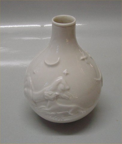 Beskrivelse: Royal Copenhagen stentøj 20570 RC Vase med relief 13,5 cm Jais Nielsen april 1944 Bibelske motiver I fin og hel stand