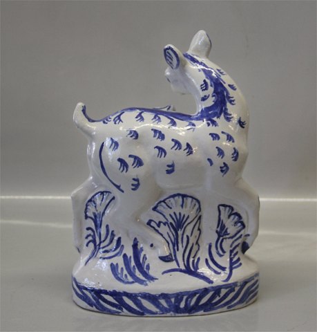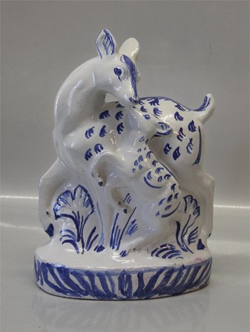Dansk Stentøj af KNUD KYHN for Kähler Blådekoreret Hjort med kid 18 x 20 cm Knud Kyhn 13/12 1923 KK