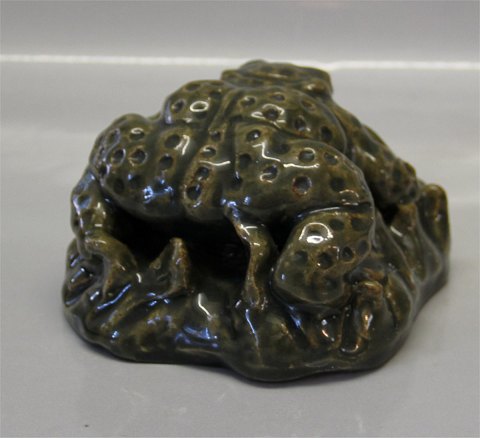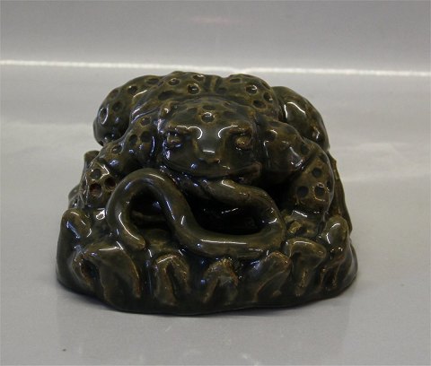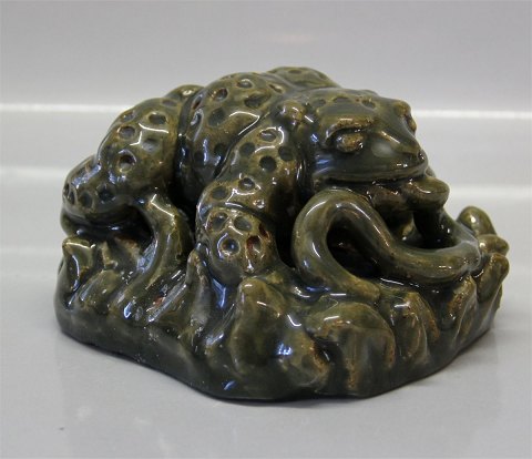 Beskrivelse: Royal Copenhagen stentøj Unika Grønglaseret Tudse med slange 10 x 15 cm Signeret KK 1951 I fin og hel stand