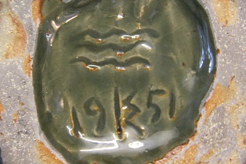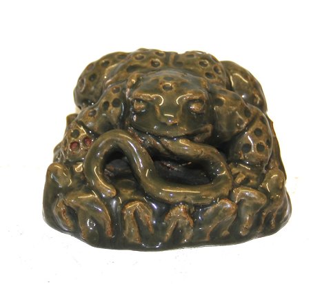 Unika Grønglaseret Tudse med slange 10 x 15 cm Signeret KK 1951