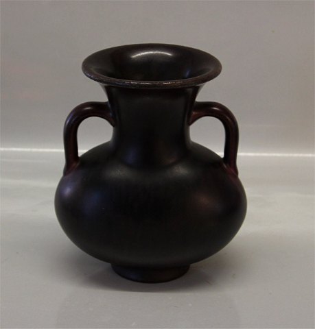 Description: Royal Copenhagen Stoneware 3220 RC Ox Blood Glazed Vase with handles 19 cm 1st. In nice and mint condition