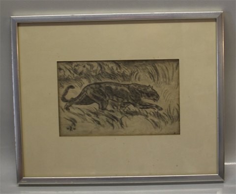 : Knud Kyhn Radering - Snigende panter Mål med ramme og paspartout 30 x 38 KK 1941