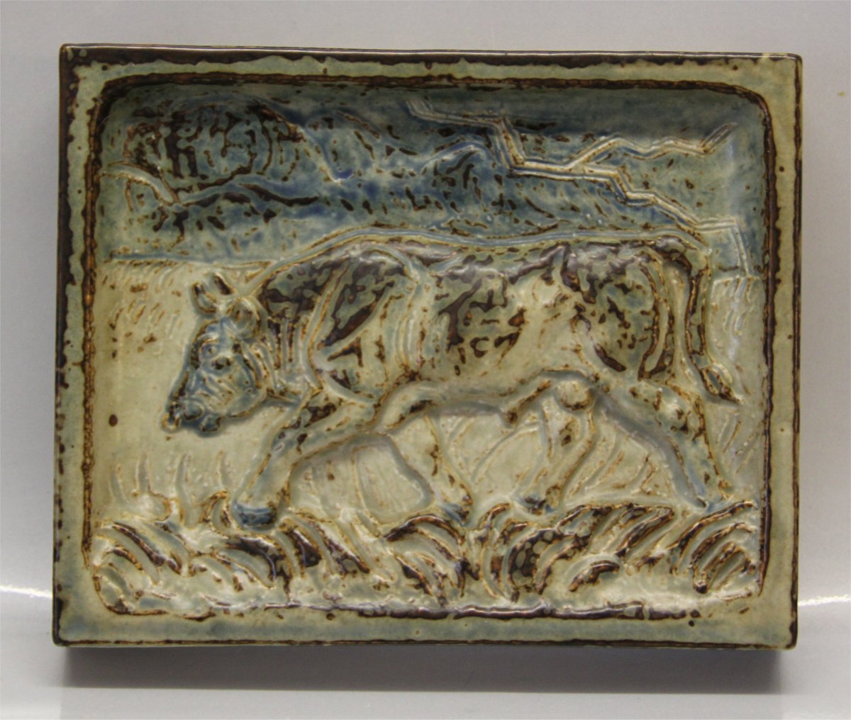 Kongelig Dansk Stentøj 21718 Kgl. Relief, Tyr 22,5 x 18 cm, september 1959, Knud Kyhn