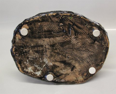 Beskrivelse: Dansk Keramik Isbjørn på fad Blågrå Glasur Søren Kongstrand 21 x 26 Signeret SK