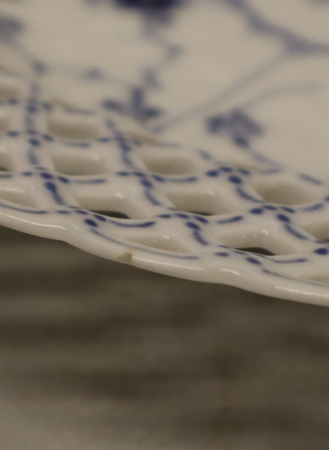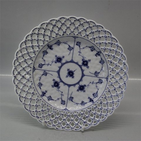 Beskrivelse: Kongelig Dansk Porcelæn Musselmalet Helblonde 1099-1 Tallerken, flad m/gennembrudt kant og rosetter til 1050 (Se listing andet sted) 23,3 cm I fin og hel stand