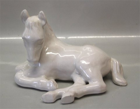 Beskrivelse: Michael Andersen Bornholm keramik Liggende hvidt føl 16 x 24 cm Mærket ,med de tre fisk i trekant 1078-1 F