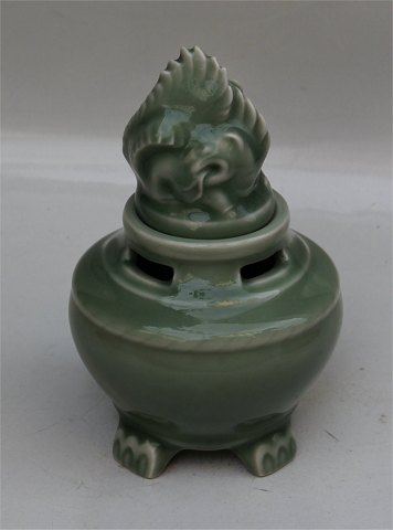 Beskrivelse: Royal Copenhagen stentøj 2311 Jais Nielsen Celadon krukke med låg I fin og hel stand