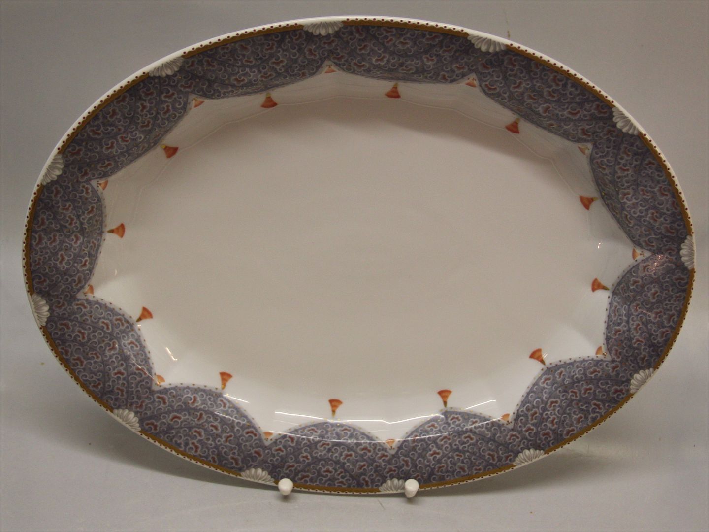 Kongelig Dansk Porcelæn Fairy Tale (Eventyr) 377 Ovalt stagefad 32 x 41 cm (8540) Grå
