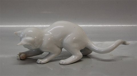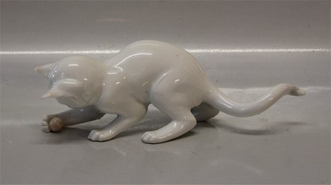 Beskrivelse: Bing & Grøndahl B&G 1555 - 1 Kat med bold 17 cm, hvid version I fin og hel stand.