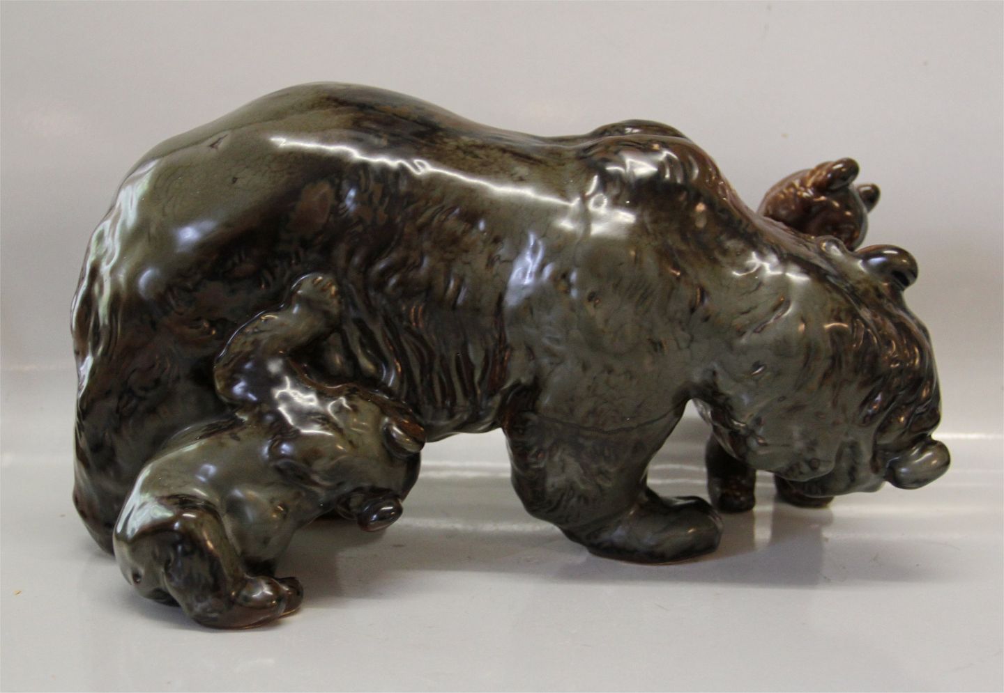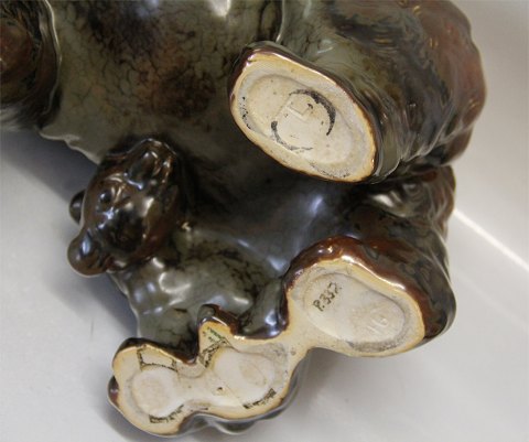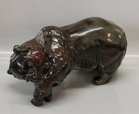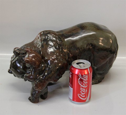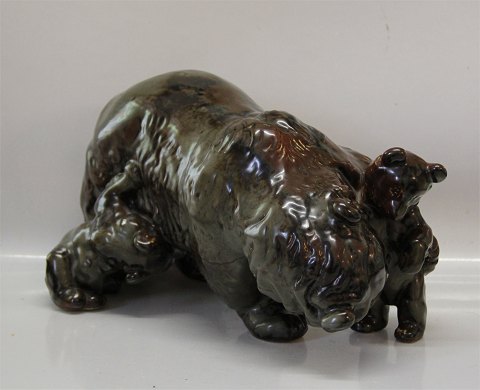 Dansk Stentøj Kæmpe B&G Bjørnemor med unger 20 x 36 cm p. 332 Signeret TL Theresa Lucheschitz
