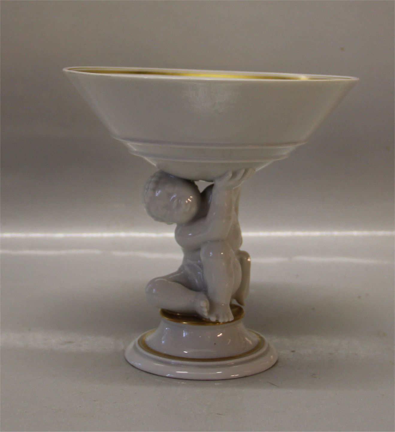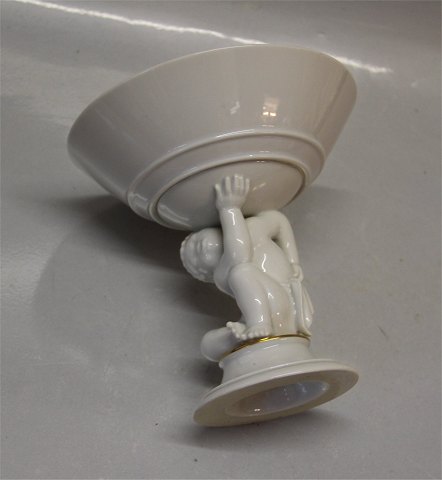 Kongelig Dansk 12455 Kgl. Barn med skål 15 x 15 cm Blanc de chine med guld 1938