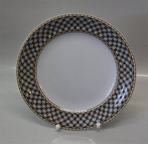 Lyseblå flet 625 Flad tallerken 25 cm, flet Kgl. Liselund flet Moderne stel i lys og mørk blå med guld. Design Diana Holstein 2001 for Royal Copenhagen