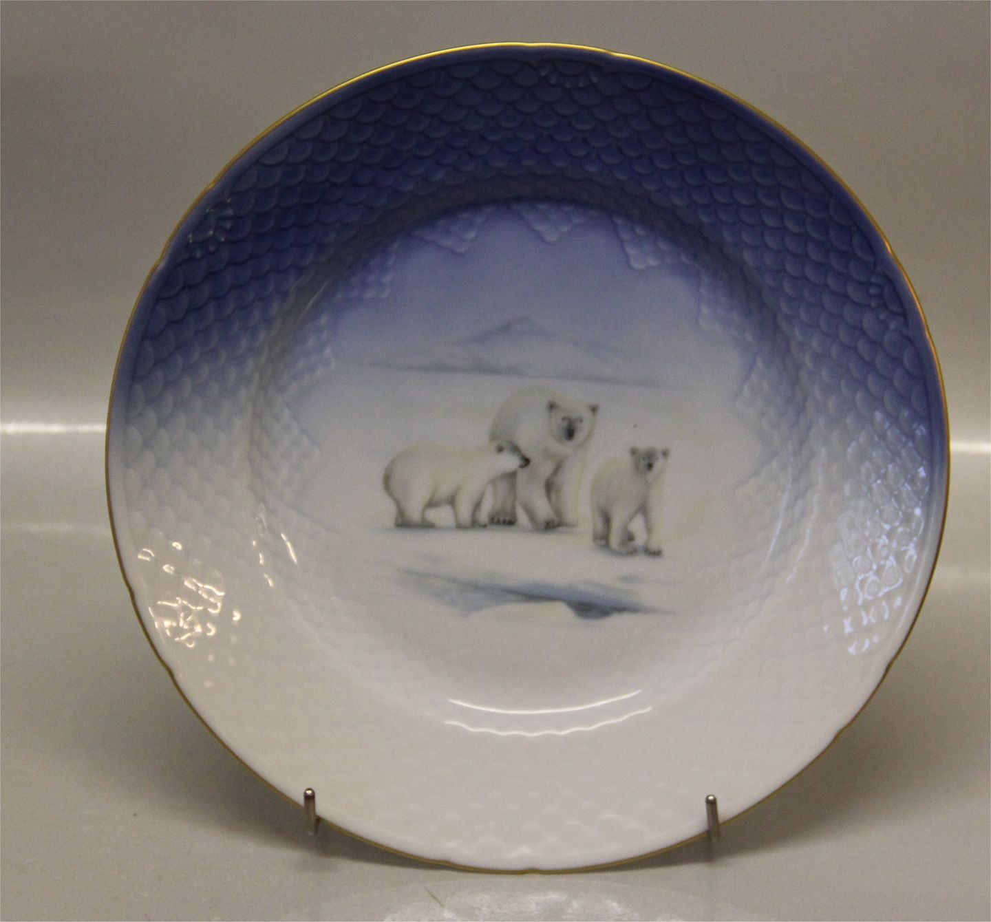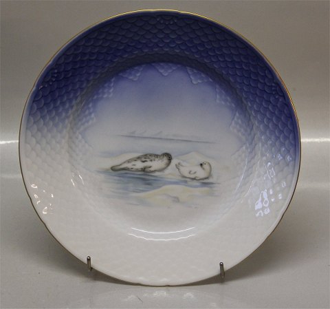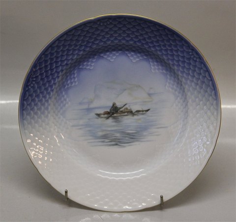 Bing & Grondahl Copenhagen Dinnerware Made on the Seagull with gold pattern. Bing & Groendahl In nice and mint condition. The Greenland Tableware was made in a cooperation betweem KGH (Royal Greenland) and B&G with Innuit motives. All the plates have holes on the back for hanging as a wall plate.