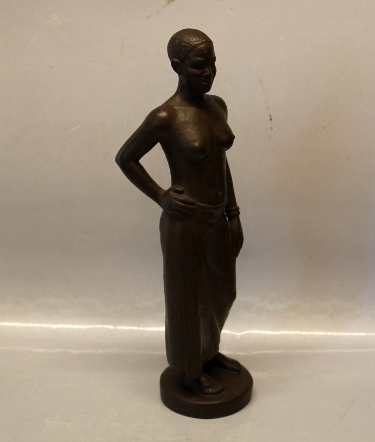 Svend Lindhart Afrikansk kvinde I lændeklæde Sortglasseret 33 cm