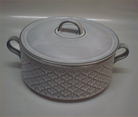 512 Lågfad 2,5 l / 8 x 19 uden låg og hanke (13 x 26 cm med hanke og låg B&G Grå Cordial Quistgaard Nissen Kronjyden stentøjsstel. I fin og hel stand. Bing & Groendahl. Stemplet Kronjyden eller Bing & Grondahl Copenhagen Stoneware: Designet for Kronjyden, Nissen af Jens Harald Quistgaard IHQ