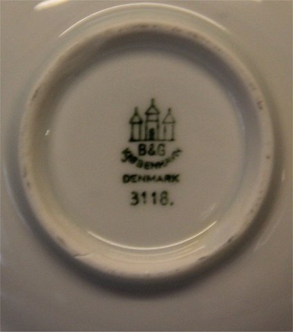 3118 Kabarettallerken 26,6 cm Bing & Grøndahl Jernporcelæn Blå tone - musling - kaldet mågestel uden måger LoL Kraftig hotelporcelæn med nr serier fra 1000