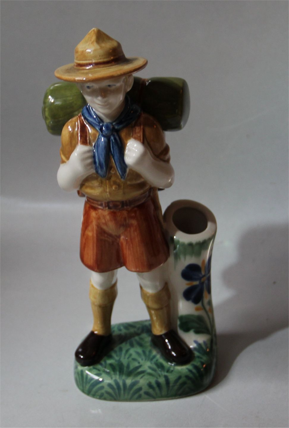 Beskrivelse: Aluminia fajance Børnehjælpsdagsfigurer. 1965 Spejderdreng # 3377 Drengespejderen Børnehjælpsfigurerne blev designet i skønvirke stil af Herluf Jensenius og formgivet af Hans Henrik Hansen (1941-1965) for at fejre børnehjælpsdagen. JUS