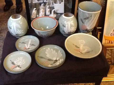 Levant 1922-1462 Skål 18 cm, Levant Nils Thorsson 1938-1940 Kunststengods med tang / koral / fiskedekoration Aluminia kunstfajance