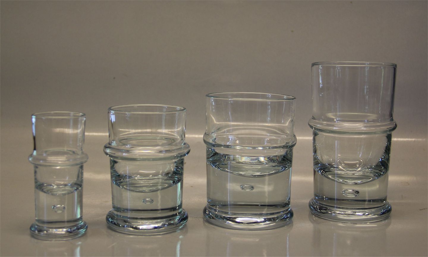 Beskrivelse: Regiment Barserie kraftig udført med luftblære i den massive base, center placeret rigle. Sidse Werner, Holmegaard Glasværk 1972 Produceret på Fyns glasværk
