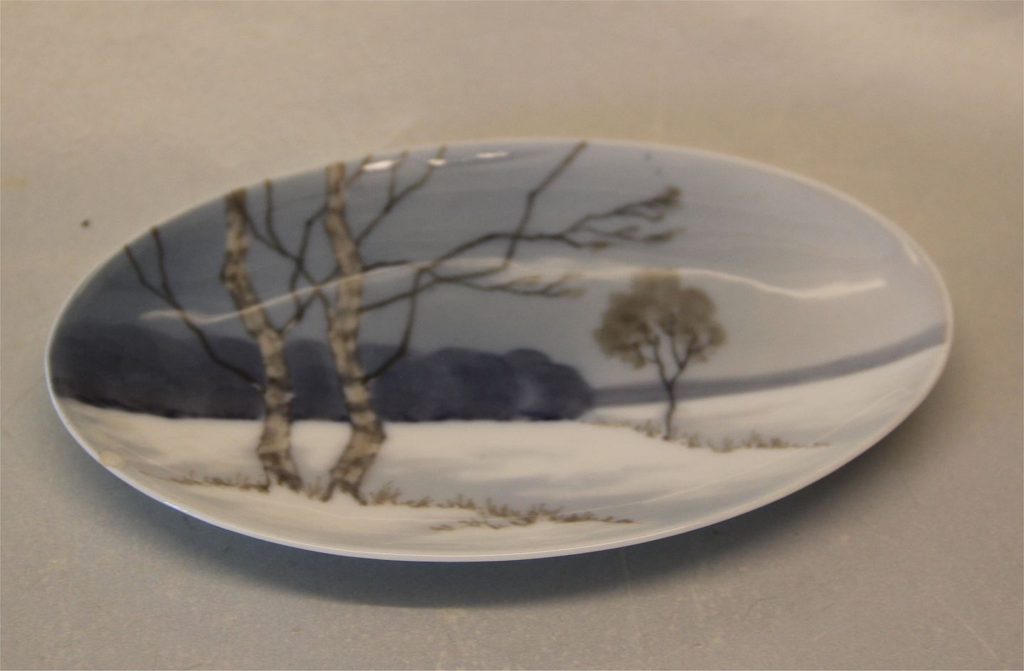 Bing & Grøndahl B&G 8387-81 Oval kortskål med birketræer I vinterlandskab 14 cm