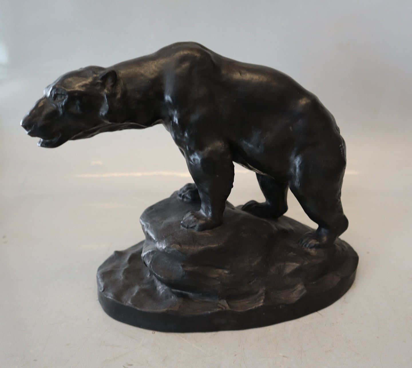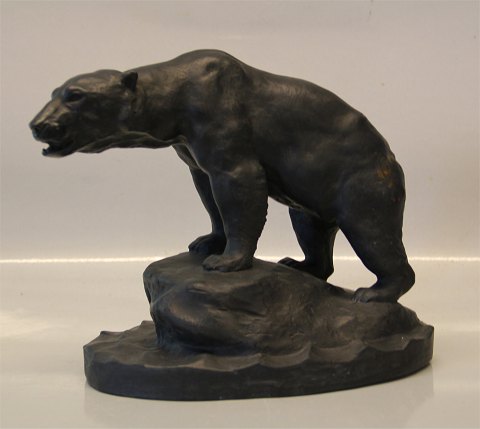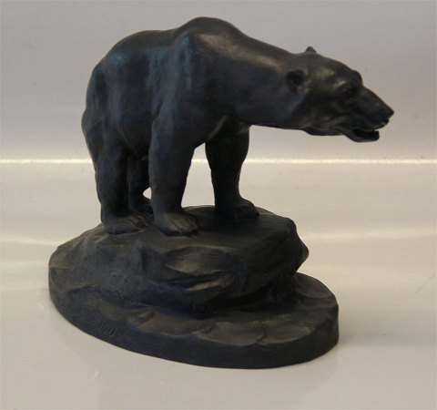 Keramik fra P. Ipsens Enke Kgl. Hof. Terracottafabrik 1843-1955 787 Isbjørn Lauritz Jensen Sort Glasseret August 1904 17 x 24 cm