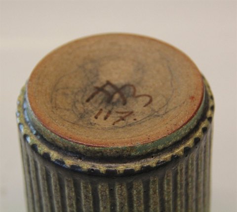 : Arne Bang Riflet Grøn Vase nr 117 ca 12 cm I fin og hel stand