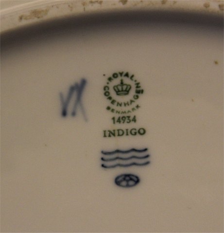 Beskrivelse: Indigo 14934 Stort rundt fad 37 cm fra Royal Copenhagen Kgl. Design Anne MarieTrolle