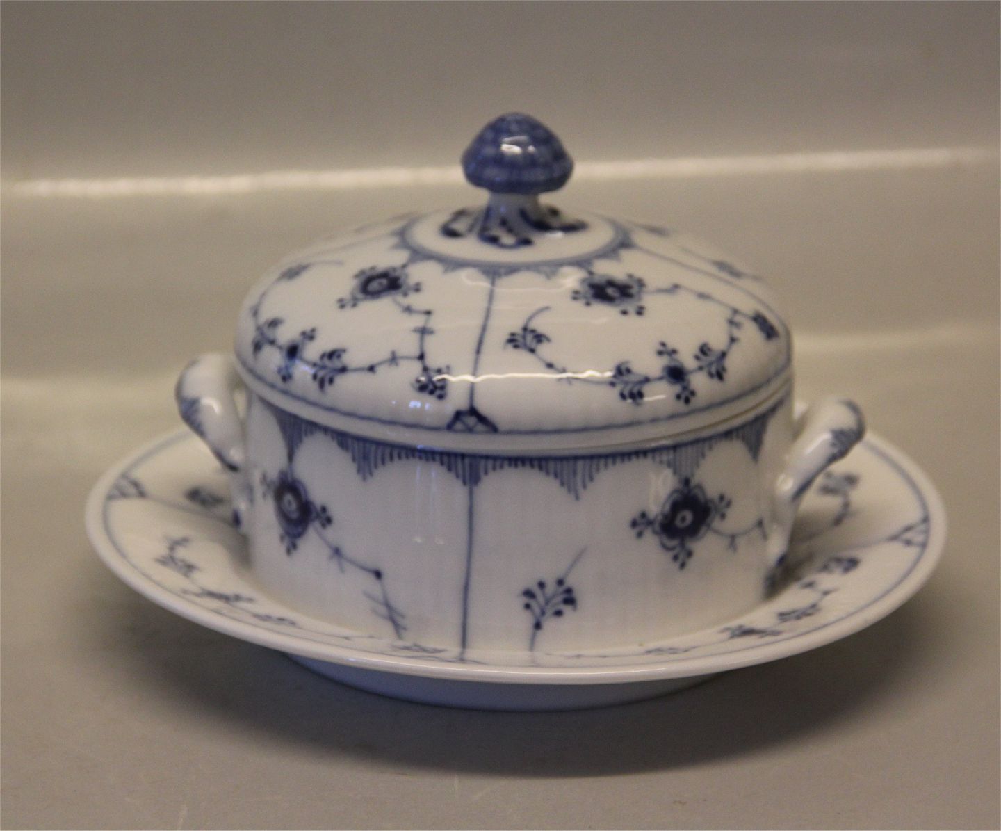 Kongelig Dansk Porcelæn Musselmalet 401-1 Smørkande/smørdåse på fad 11 x 17 cm