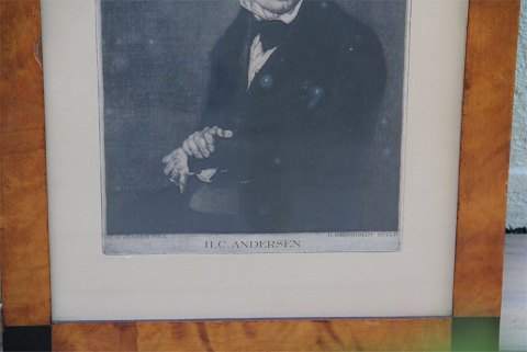 Beskrivelse: Radering H.C. Andersen efter C.A. Jensen - 1792-1870 (Pinxit) udført af H. Grønholt (Sculp) 46.5 x 36 .5 cm inklusiv gl. glas og ramme