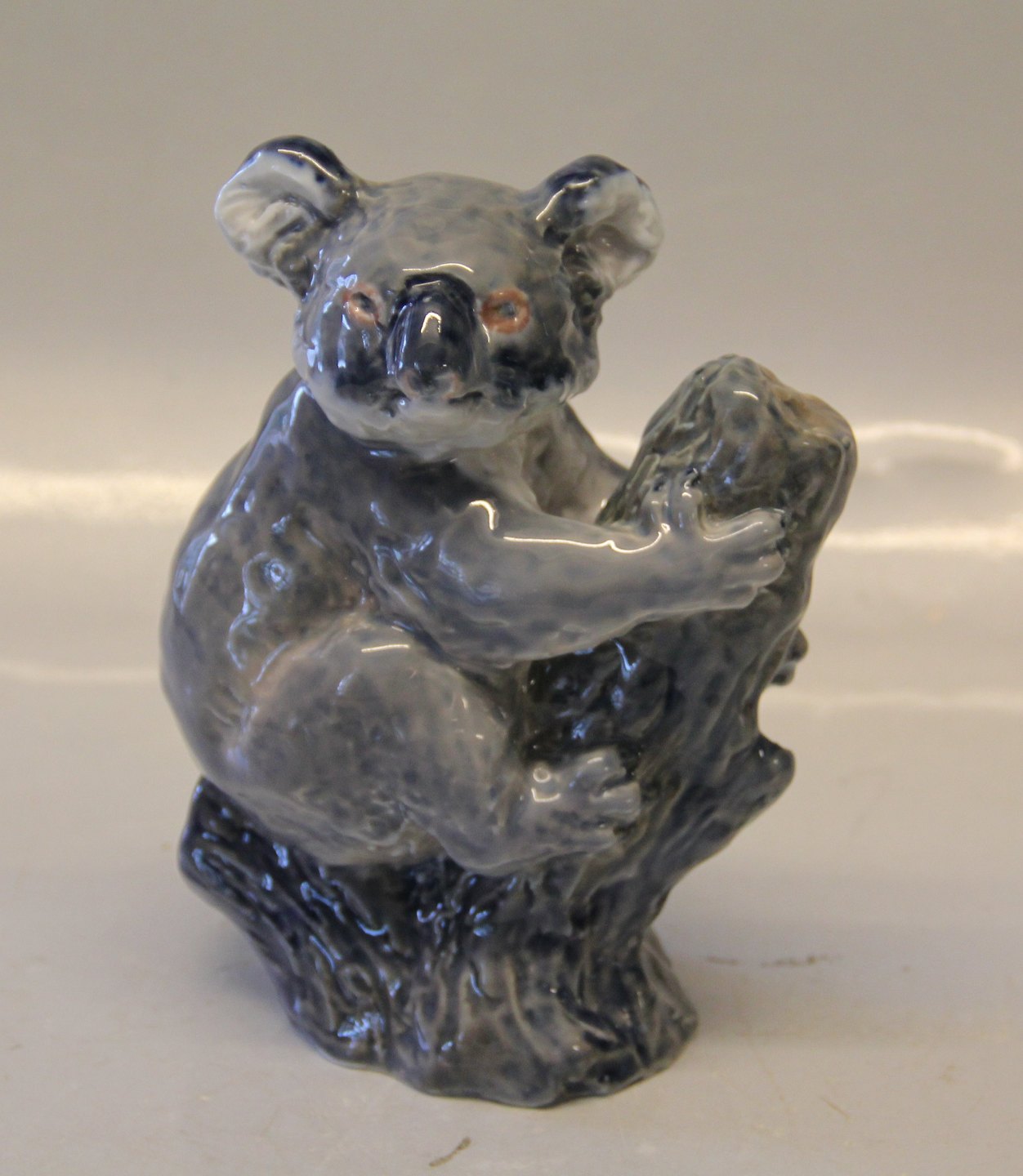 Beskrivelse: Kgl. figur fra Royal Copenhagen 5402 Kgl. Koala på træstub 18 x 14 cm William Timyn 2. sort I hel og fin stand