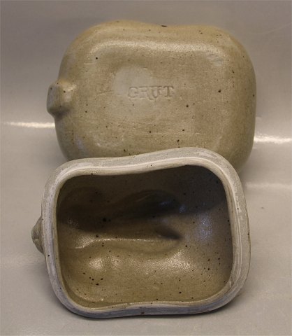 Beskrivelse: Royal Copenhagen Aluminia fajance 22679 Kgl. Hareterrin af fajancenr 3827, ildpotmasse 13 x 17 cm marts 1978. Jeanne Grut
