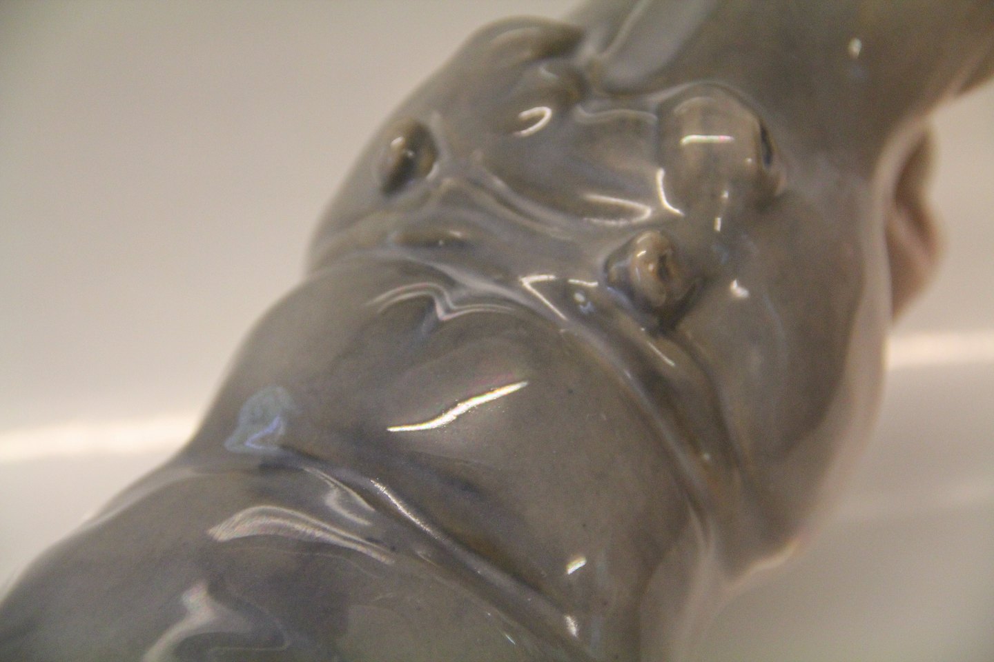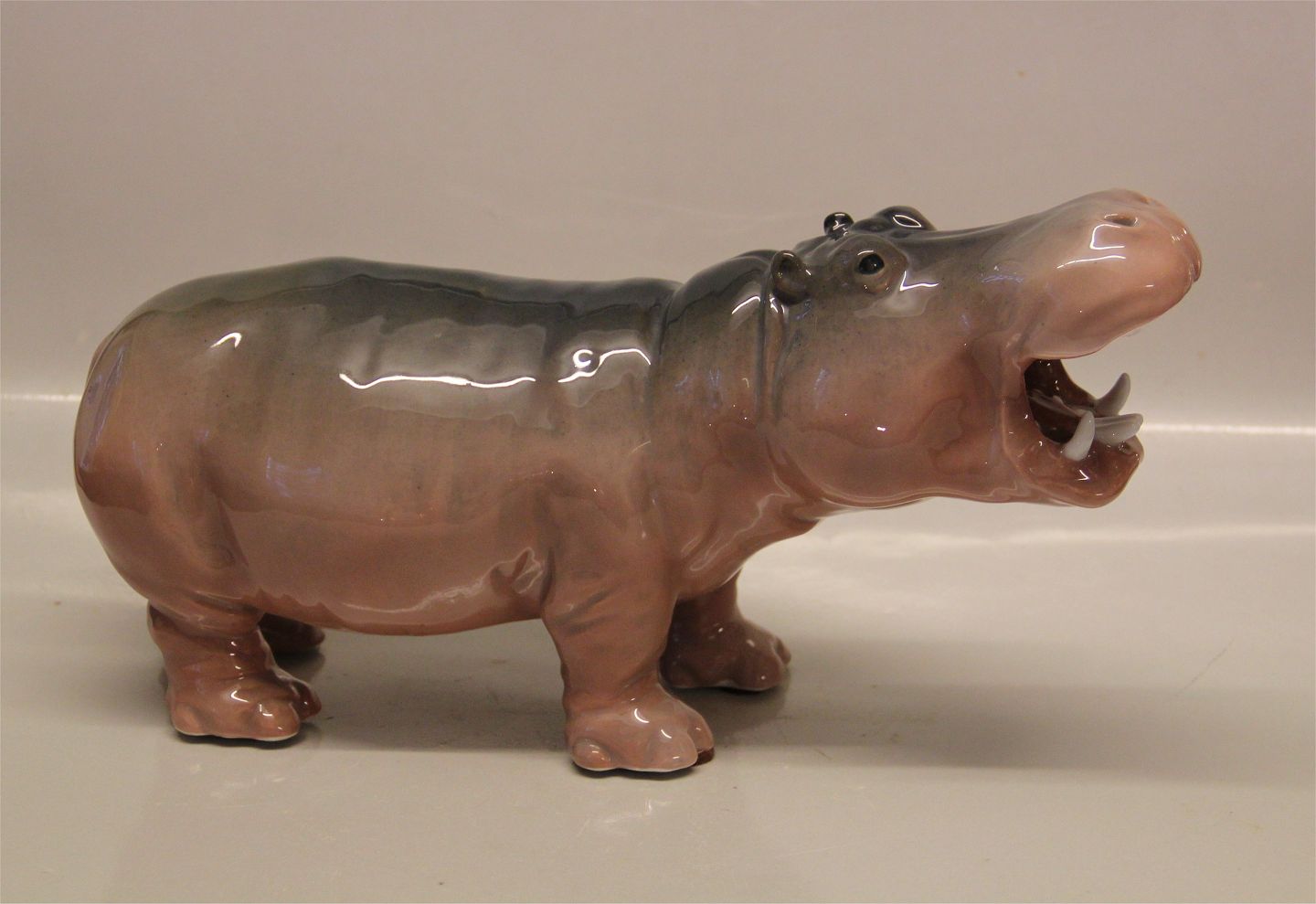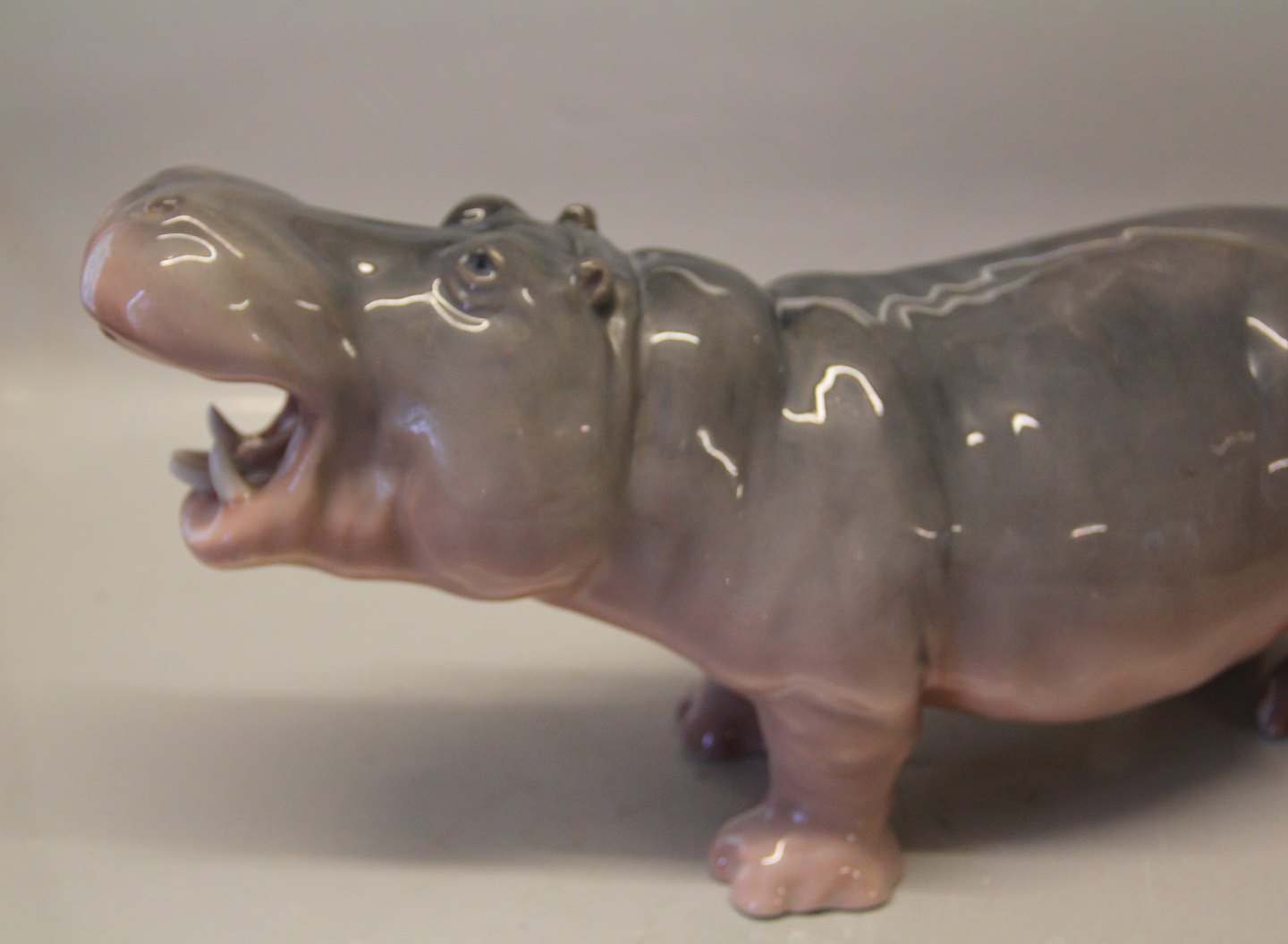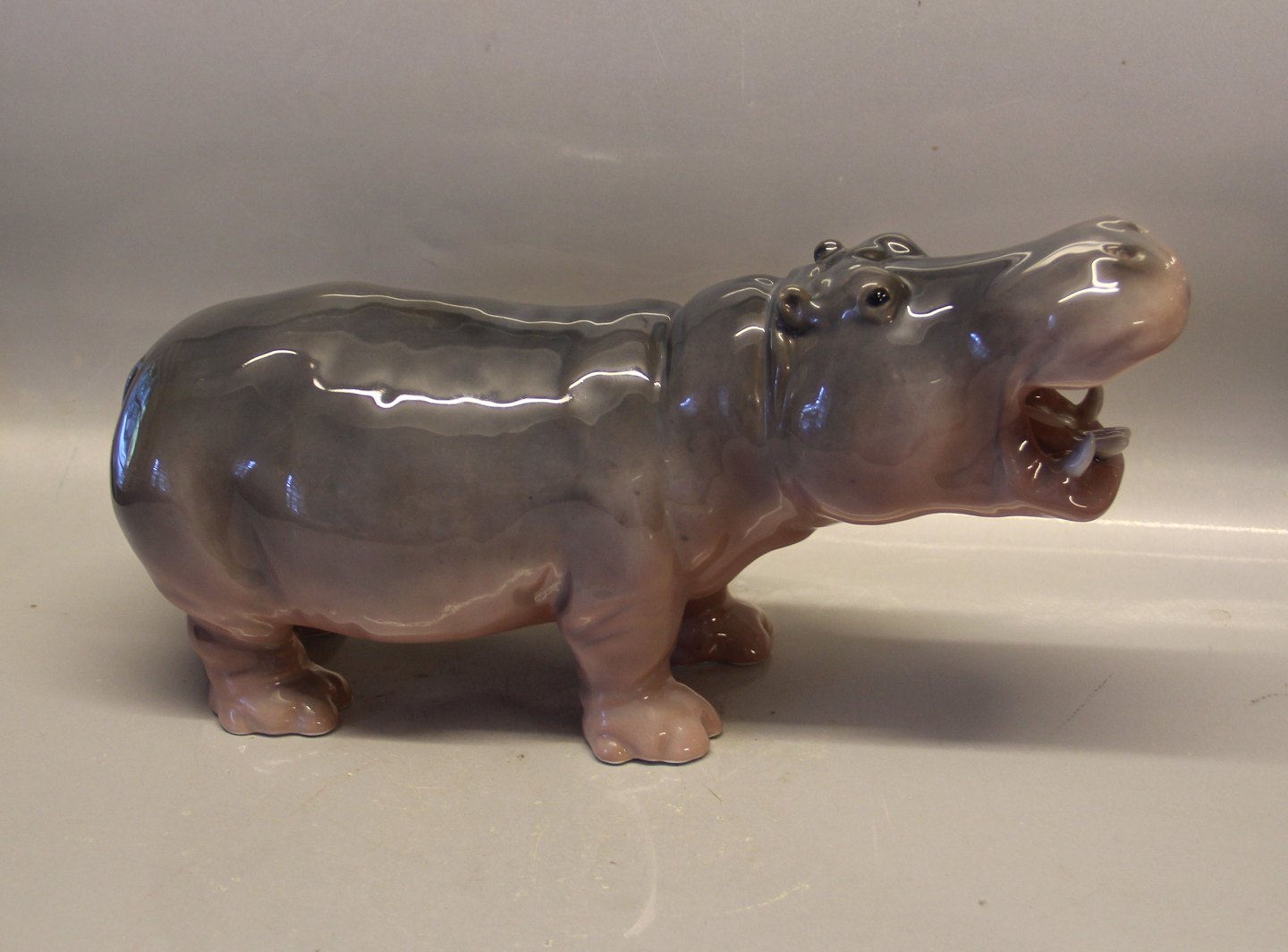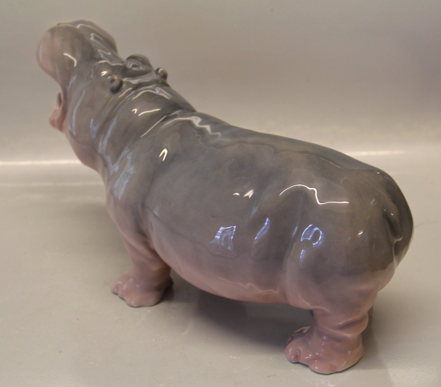 Beskrivelse: Kgl. figur fra Royal Copenhagen 309 Kgl. Pygmæ Flodhest 18 x 34 cm Princess Marie 1901 2nd. I hel og fin stand