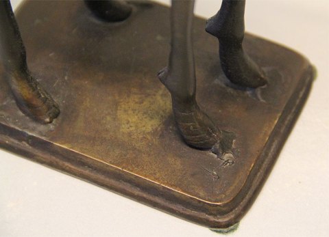 Beskrivelse: Hjort Bronceret metal - Bronze ? 32 cm høj Art Deco på firkantet base 10 x 7,5 cm Muligvis fra Finland Sjovt låg på Ryg
