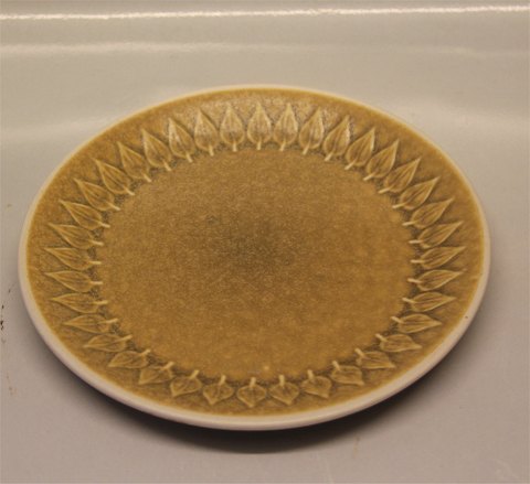 618 Tallerken 19,6 cm Bing & Grøndahl B&G Relief Quistgaard Nissen Kronjyden stentøjsstel. I fin og hel stand. Bing & Groendahl. Stemplet Kronjyden eller Bing & Grondahl Copenhagen Stoneware: Bladformet mønster i releif på gult stentøj af Quistgaard for Kronjyden, Nissen.