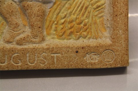 Beskrivelse: Bing & Grøndahl stentøj B&G 7108 August relief 23,5 cm , Karl Otto Johansen