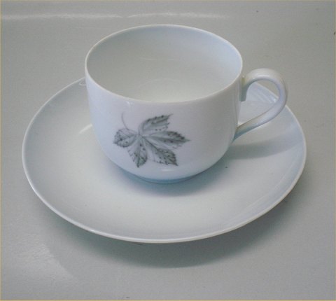 Bing & Grøndahl Løvfald 108 Chokoladekop Tekop og underkop 1,5 dl (473)- efterårsblade på blåt stel fin og hel stand