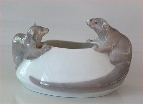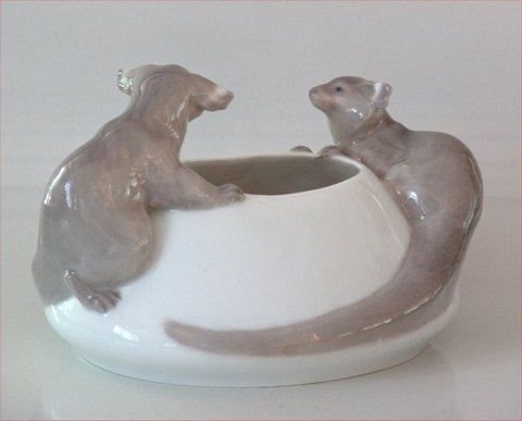 Beskrivelse: Kgl. figur fra Royal Copenhagen 601 Kgl. Skål med oddere 11 x 18 cm Chr. Thomsen 1904 2. sortering