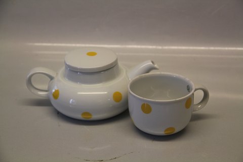 Bing & Grøndahl 653 Tekande medgul polkadot dekoration 4578 med kop I fin og hel stand. ca 12 x 20 cm