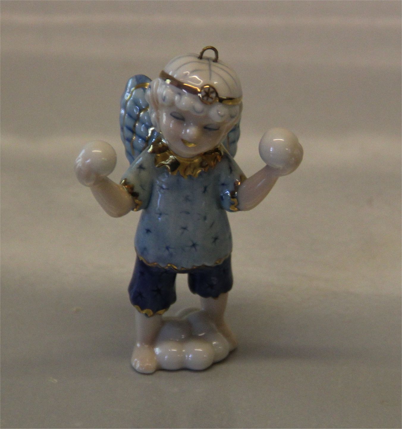 Bing & Grøndahl B&G 165 Engel med snebolde 7.5 cm - ophæng til juletræet I fin og hel stand. Årsfigurer