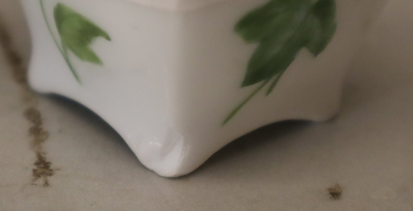 Beskrivelse: 2 med lille skår på foden og/ eller kant DKk 675 Samlet kr 1100
