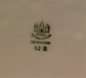 012 b Oval kartoffelskål 24,5 cm (573) Golden Sun - Gylden Sol. Form 674 er formgivet af Sigward Bernadotte. Denne form findes i hvidt, med bred guldkant (Gylden Sol), med smal guldbelægning på inderkanten (Vega), med grønt og guld (Perseus), med rødt og guld (Herkules) og beige og guld (Norma).