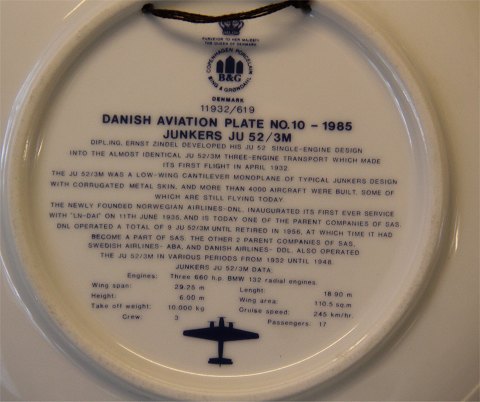 Flyplatter fra B&G & Royal Copenhagen Aviation SAS etc