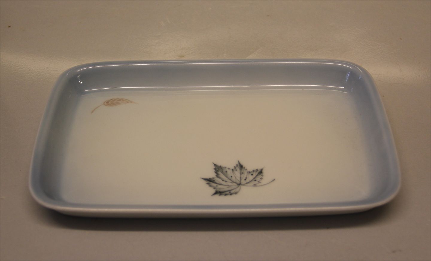 096 Bakke 24 x 15 cm Bing & Grøndahl Løvfald - efterårsblade på blåt stel fin og hel stand