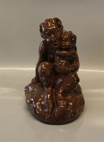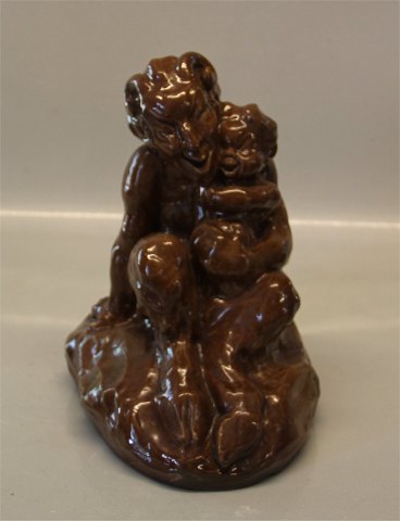 Description: Art Pottery Faun by Malinowsky Height 21 cm Brown Glazed