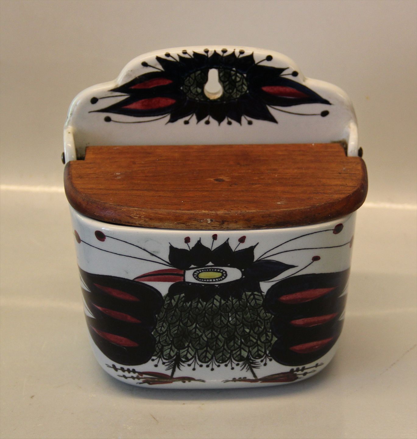 Aluminia kunstfajance 132-261 Fantasifugl på saltkar med trælåg 15 x 16 cm Beth Breyen Tenera